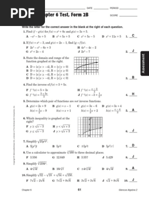 Glencoe Algebra 1 Chapter 8 Test Answer Key